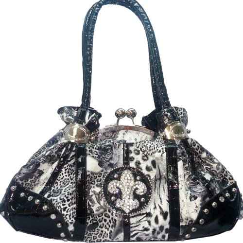 Designer Inspired Animal & flower print rhinestone fleur de lis shoulder Handbag Multi Black Review