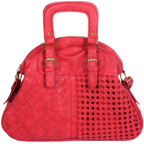 Designer Inspired Emperia satchel w/ woven design & belted accents Handbag Red Review